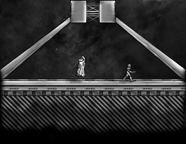 The two companions began to make their way towards the grand hall. It must have looked very strange to see two beings so different moving together through the darkened halls of Marathon. The Messenger had the lead; he moved slowly with his weapon drawn, while Reehath brought up the rear. ![]() They walked through room after empty room. They could hear explosions and fighting far away but it never seemed to find them. "Durandal, can you translate this to my Seefit friend for me?" said the Messenger, seemingly into space. "So what do you think of your new found freedom? Durandal told me that he plans on leading your race in rebellion against the aliens that attacked our ship." The Messenger turned his visor-covered eyes to the floating alien beside him. At first the words were just sounds to Reehath, but in a few moments they were repeated in his head in the language of the Seefit. Since the language of the human was being translated for him, Reehath assumed it would be the same the other way around. He sent his thoughts to the Messenger, "Freedom. The Seefit haven't used that word in a very long time. I never thought about it before, but that's what this is. I finally have freedom, something that I have been longing for all my life. I have great respect for this Durandal, even though I have only recently gained knowledge of him." The Messenger just nodded as they passed through yet another bulkhead. |