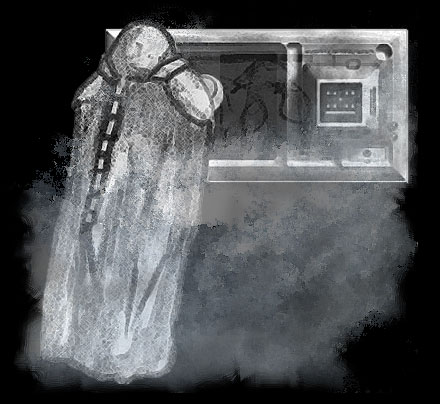 The next room was not like the rest, however, as they were no longer alone. ![]() A single spotlight shot through the steam from the far end of the room, both human and Seefit froze as the spotlight began scanning around the room. It must have been a kitchen at some time, for now the room was but a mess of twisted wreckage, but utensils and platters could be seen scattered about. Reehath thought quickly, both the Messenger and himself were at a disadvantage in the steamy environment. The pfhor would find them in time, no matter how quiet they were. He called upon his skills at using computers to aid him. All the years doing tasks for others, and he was finally able to use his abilities to help himself and those he cared about. He used the nearest terminal and quickly found a way to turn on the ventilation fans in the room that they were in. The hum of the fans could be heard in the silent room as the steam began to lift. The Messenger took cover, but Reehath was exposed as he was still near the terminal. The pfhor's identity was finally revealed. It was a hunter, a very powerful type of pfhor, much larger than the pfhor warriors. Hunters were completely covered by incredibly strong armor and had weapons that were even more powerful than Reehath's own was. The hunter quickly spotted Reehath, across the room at the terminal and a battle scream issued from its armour covered mouth. |