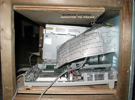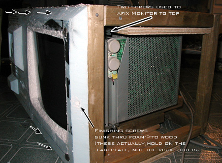 I held the face plate on, monitor poking through, to the frame, and made some trimmings here and there.