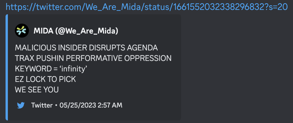 MIDA Twitter Account Closed