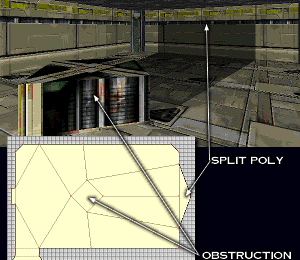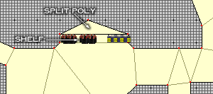 Split Polys are actually a polygon that is on a side of another polygon which in turn splits the wall that it is attached too. This is why Grendel refers to them as Split Polys.