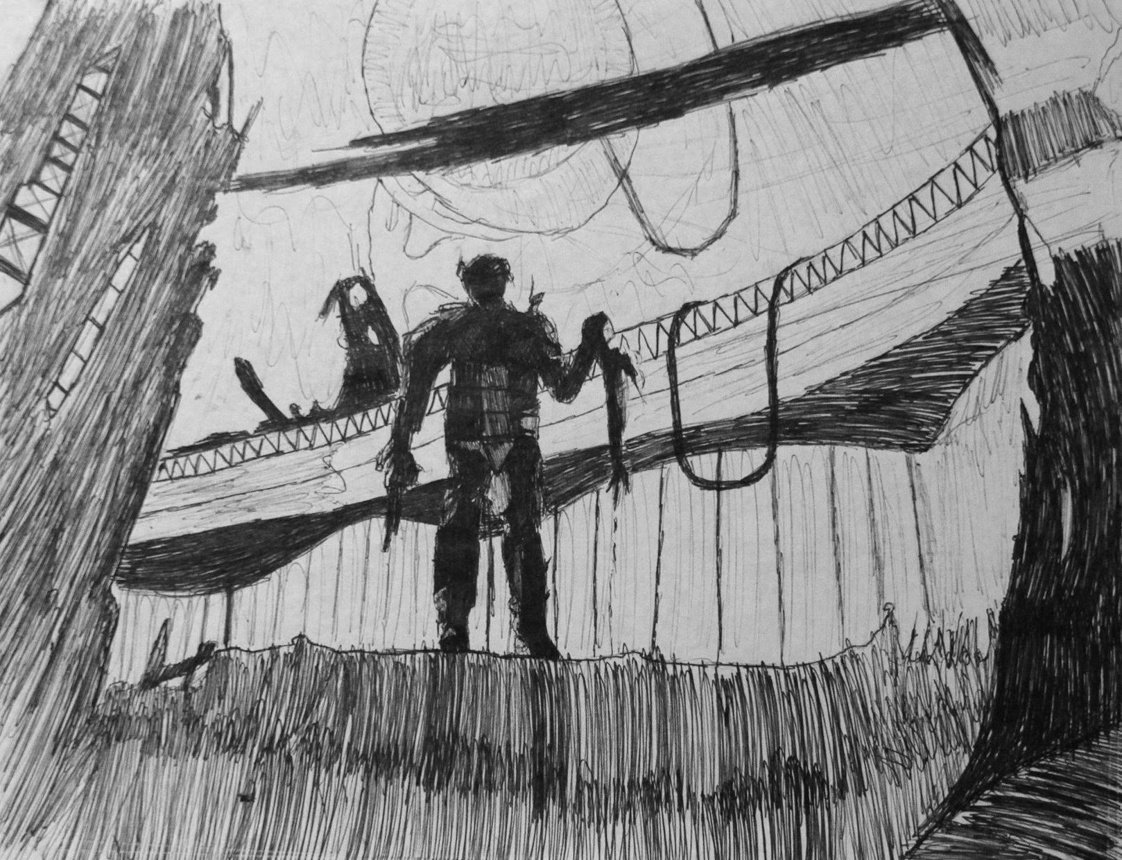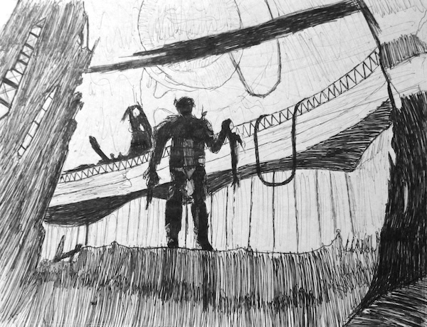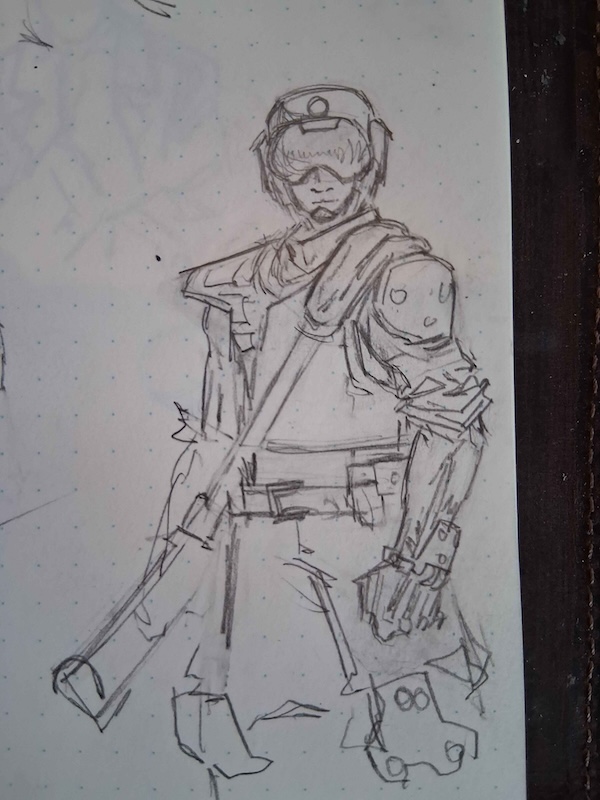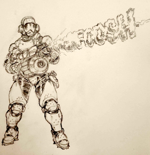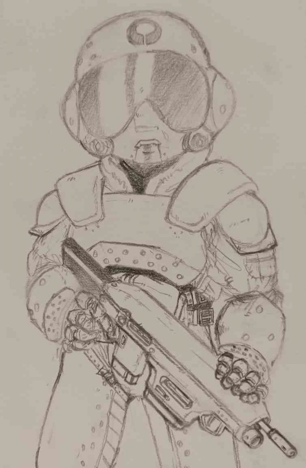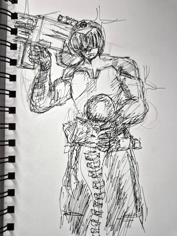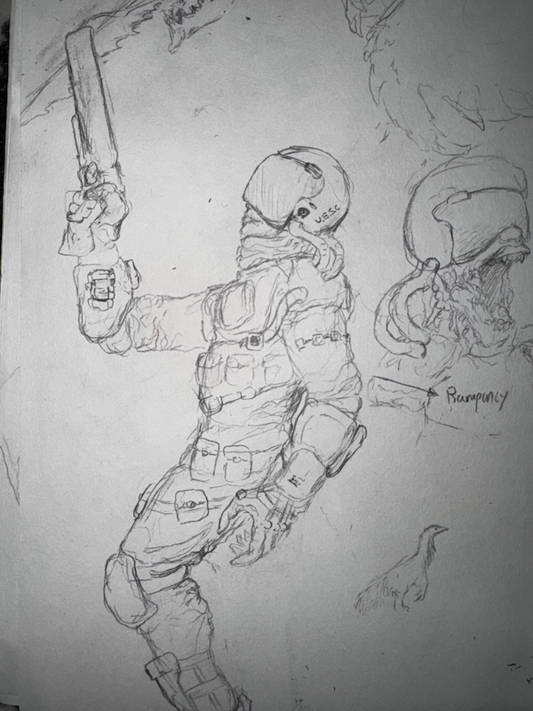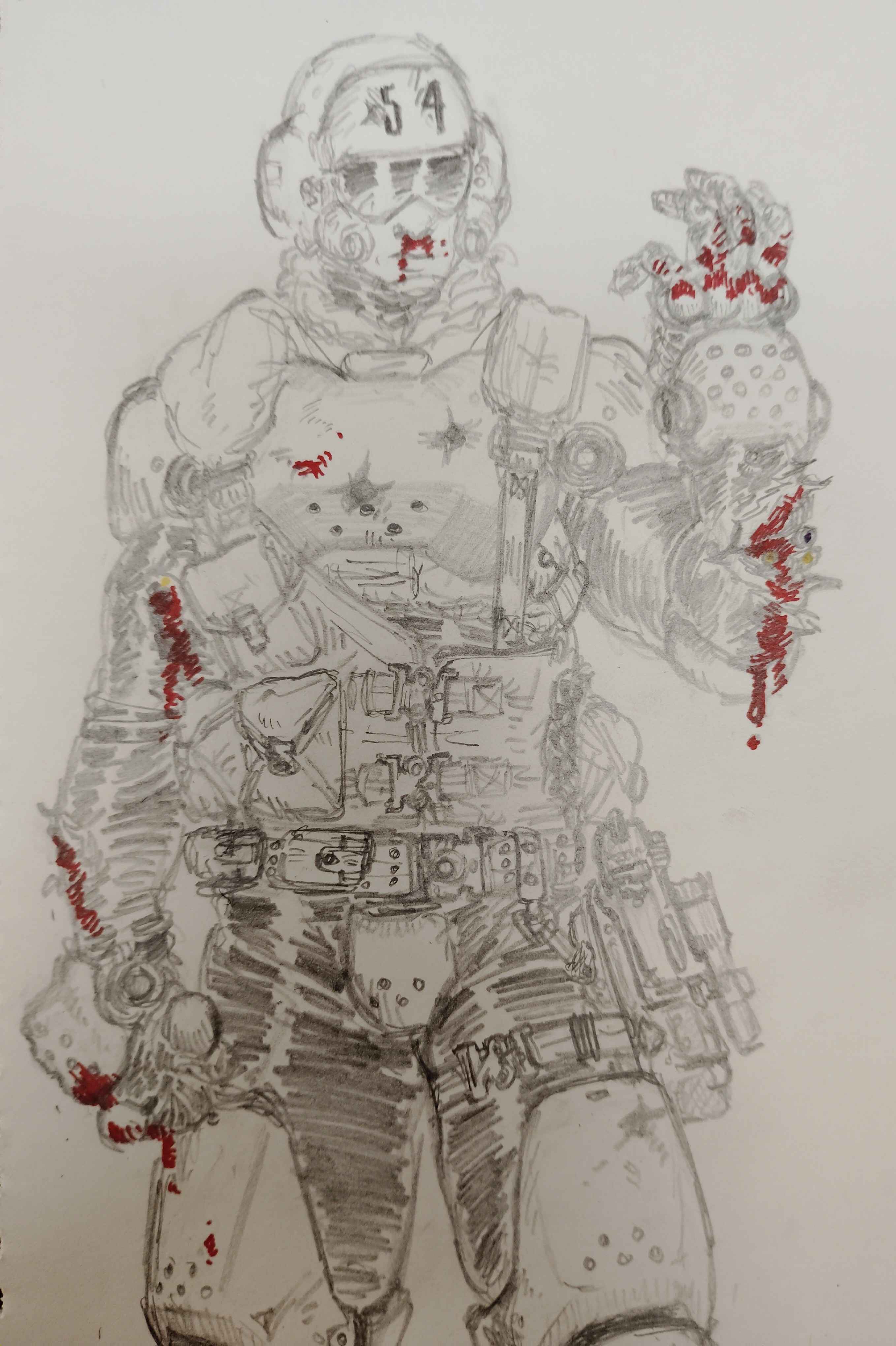 Day #885. It's sketchy Friday. We've got sketches. First up... A Marathon / Halo crossover sketch by Throck Mortin (@TMortin1777).