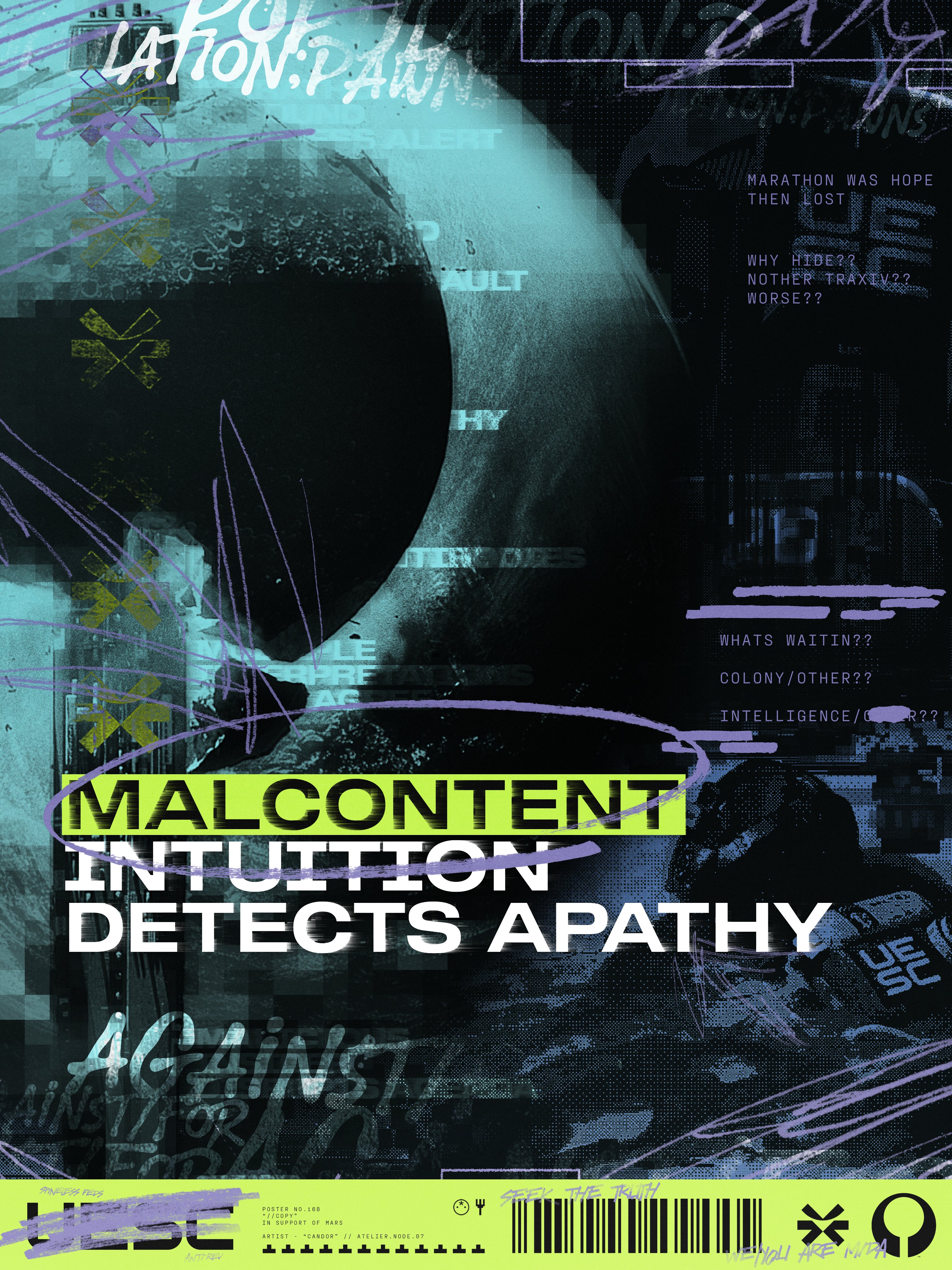 Day #888. Happy MIDA Monday. The insurgent known only as 'Chance' is back with more MIDA Pirate Radio. Live from Mars and Tau Ceti. Lock down your aerial. MIDA Pirate Radio is a series of playlists on Spotify specifically chosen to meet the needs of any would be UESC hacker. We featured MIDA Pirate Radio back on October 6, 2025 but the UESC intercepted the transmissions and activated the DIESIS Protocol. be damaging to the security and safety of our solar system and thus banned by order of the Unified Earth Space Council. 27.05.2888 Mix005 of MIDA Pirate Radio comes with more bespoke artwork. ![]() MIDA Pirate Radio Mix005 by Chance on the Unofficial Marathon Discord. October 22, 2025. Here is the direct link to Mix005 of MIDA Pirate Radio : 005 Warning. Clicking on this link may expose you to the UESC's DIESIS Protocol. Consider yourself warned. Candor (@CandorR6) continues his Marathon-inspired poster series with MIDA defaced UESC propaganda.
