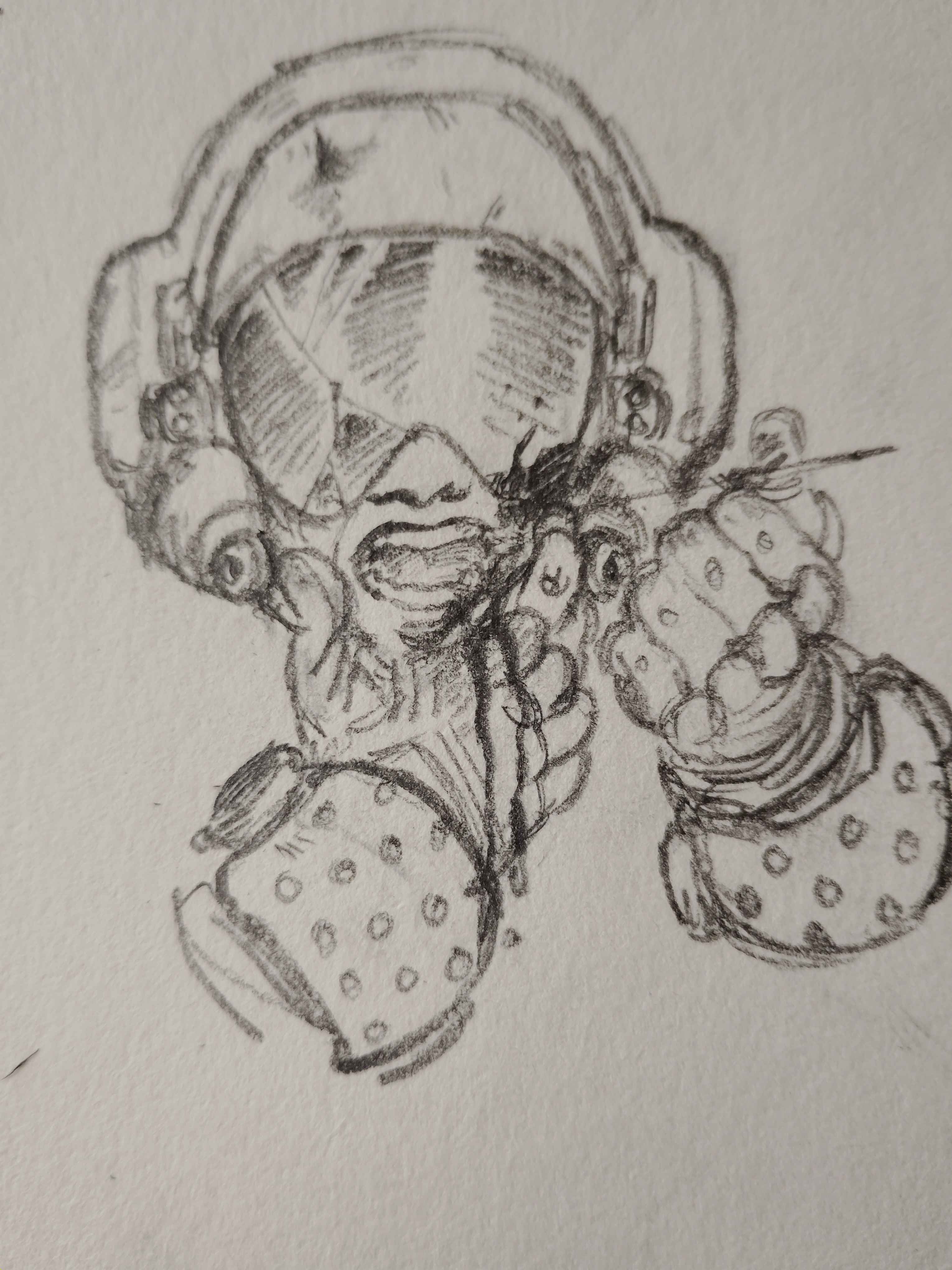 Pfhor sketch by serecky on the Unofficial Marathon Discord. October 16, 2025.