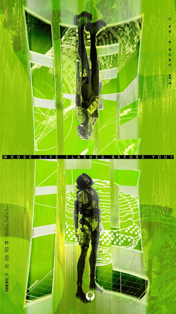 The alt text reads: Marathon-themed poster featuring Void and Glitch looking at each other like reflections, with the textThe text in the middle is from the Marathon Alpha. This is a paraphrase of Durandal's line in the Marathon Infinity level Hang Brain (Terminal 1: 1st Message). When the time comes, whose life will flash before yours? ![]() |