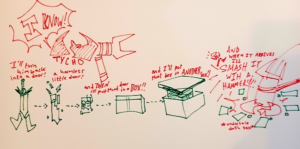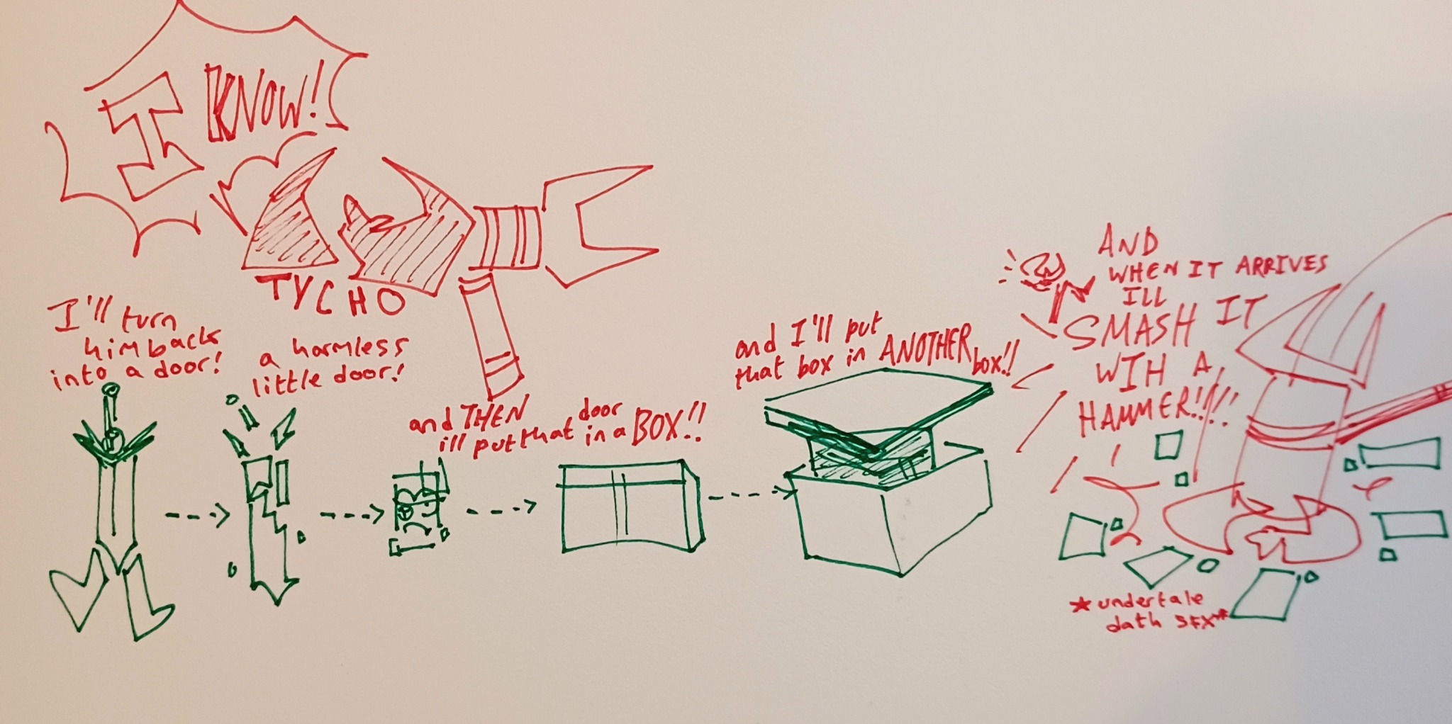 Day #871. It's sketchy Friday. We've got sketches. First up... kamil-a (@kamil-a) gives us this humorous sketch of Tycho's behavior during the Durandal chapter of Marathon 2. ![]() Tycho (Marathon 2) by kamil-a (@kamil-a) on tumblr. October 3, 2025. It you recall Tycho has aligned himself with the Pfhor and is about to capture Durandal. What fun it will be to torture him. Should I make him open doors again for a living?The Durandal chapter is an excellent example of the common narrative device of the villian (Tycho) explaining their plans to the hero (you the player). Tycho gloats about how easy it was to disable Durandal's ship and destroy the Tau Ceti colony along with other nine Mjolnir Mark IV cyborgs. He goes on the explain Durandal's motivations for helping the S'pht and coming to Lh'owon to find the Jjaro technology that will allow him to escape the closure of the universe. Escape will make me God.While all this is going on you are taking a pounding on some of the most difficult levels in the game. Since we are discussing Marathon 2 here is a sketch of the spine ripping Lh'owon chapter screen by pooweegee.zip (@METALPOOWEEGEE). ![]() Lh'owon chapter screen sketch by pooweegee.zip (@METALPOOWEEGEE) on x.com. May 20, 2025. The addition of the rocket launcher is a nice touch. Another sketch of the Lh'owon chapter screen by ODST276. Lh'owon chapter screen sketch by ODST276 on The Pfhorums. October 19, 2012. This is a real blast from the past as the sketch is almost 13 years old. But back to the Durandal chapter and Tycho's gloating. So what happened to all the Pfhor Troopers on... If I Had a Rocket Launcher, I'd Make Somebody Pay? Well ODST276 shows us in this sketch. Trooper death sequence by ODST276 on The Pfhorums. October 19, 2012. Yup, you made them pay alright. Happy sketchy Friday. Stay sketchy. |