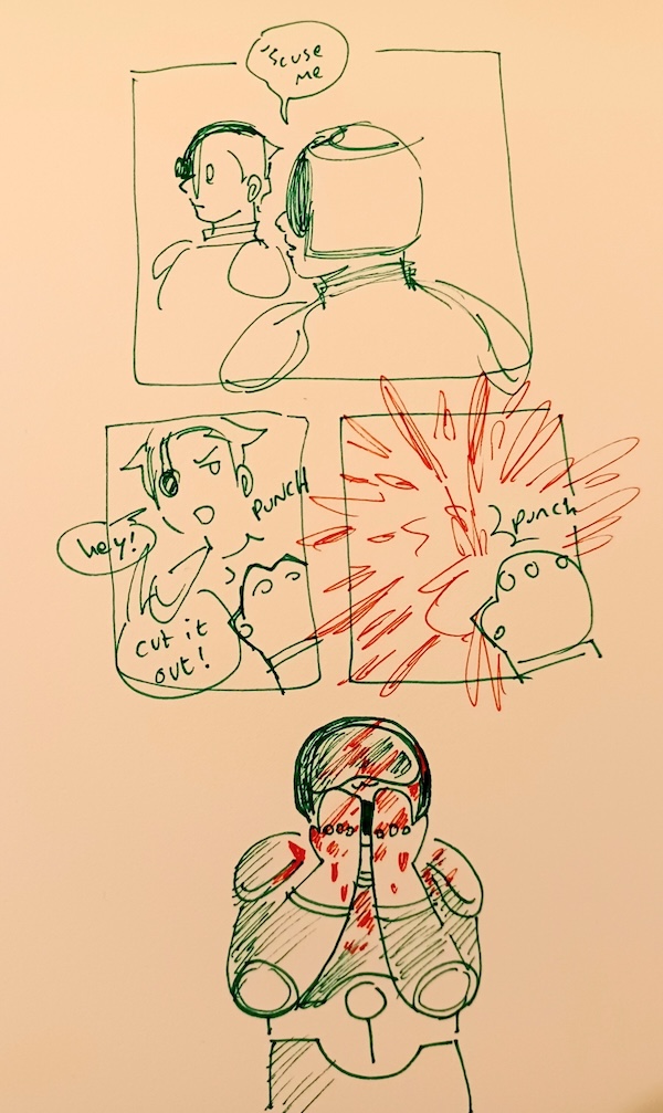 Kam writes: the spht moved out of the way when you bump them on the shoulder!!! these guys dont.Everyone was a murderer... Happy sketchy Friday. Stay sketchy. |