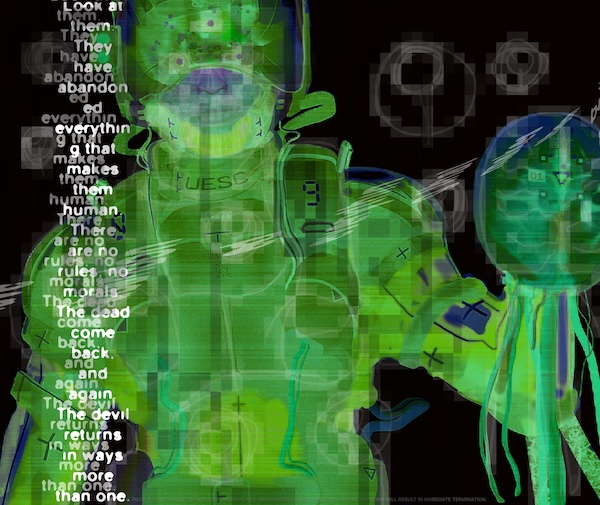 The green variant reminds me of his iconic Mjolnir Recon 54 artwork entitled Flowers in Heaven.