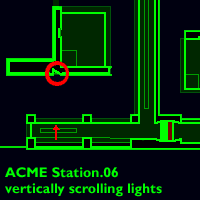Acme Station has some pretty cool lighting effects. The one marked here on the map is relatively simple to pull off. First, we'll remark on how the geometry is set up, then we'll go through setting up the lights.